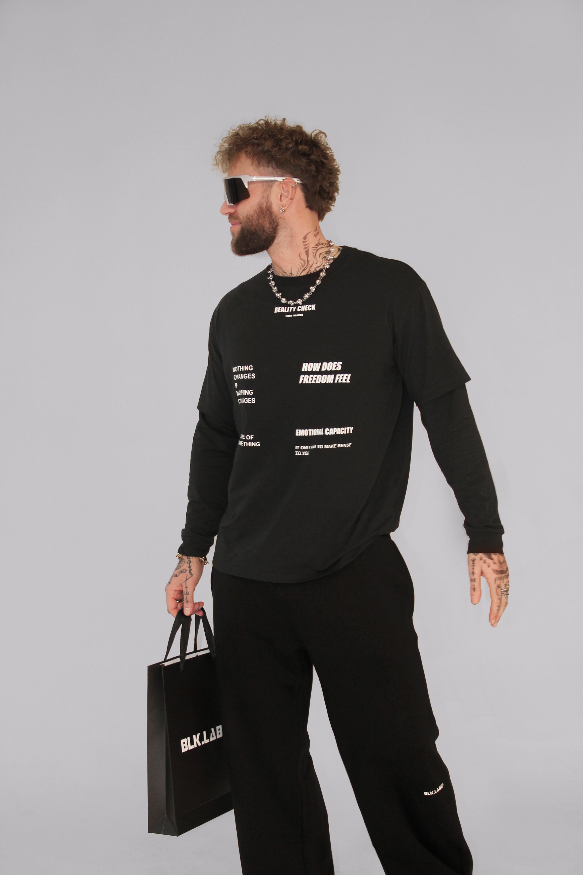 Featuring impactful typography across the front and bold BLK.LAB branding on the back, it’s a piece that redefines everyday wear with attitude. The soft cotton blend ensures comfort, while added stretch gives it the flexibility to move with you.